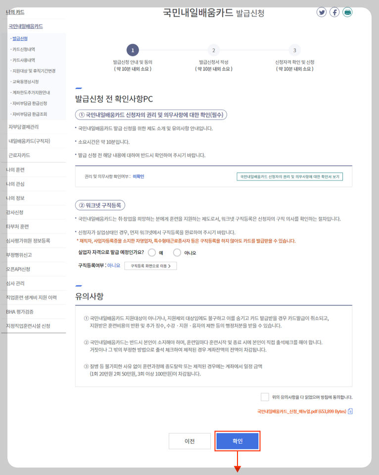 3. 내일배움카드 발급받기(신청하기) - pc버전
